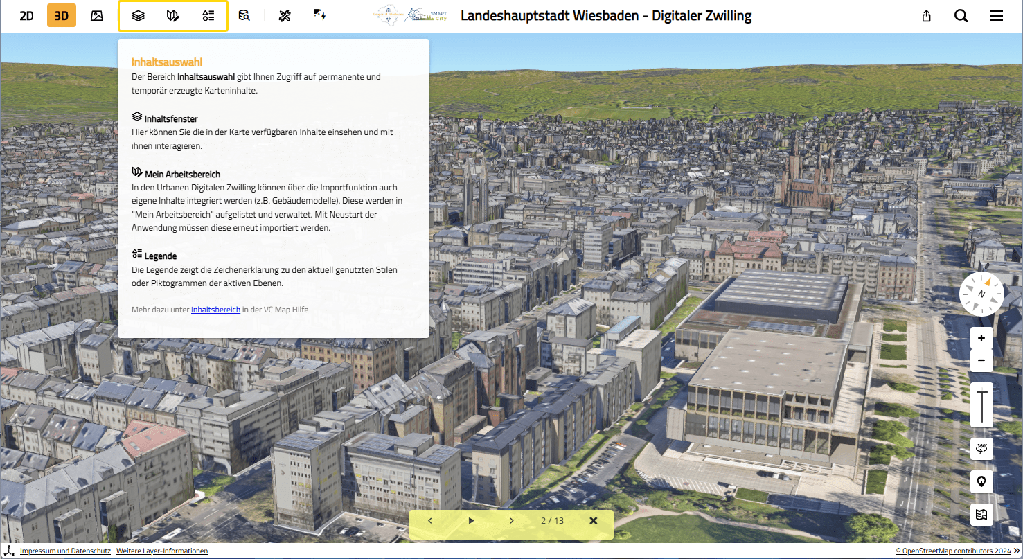 The screen shows the guided tour of the Wiesbaden Digital Twin: