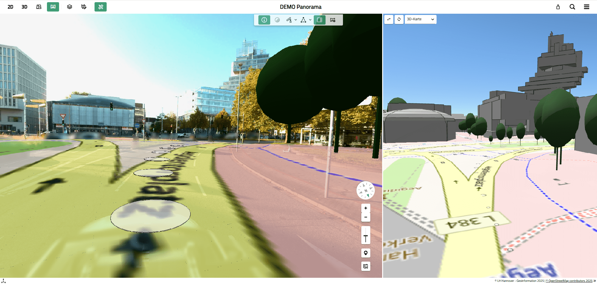 - Digitalisieren und Erfassen von Objekten im Panoramabild und Übernahme in die weiteren Kartenansichten der VC Map (2D, 3D, Schrägluftbilder)